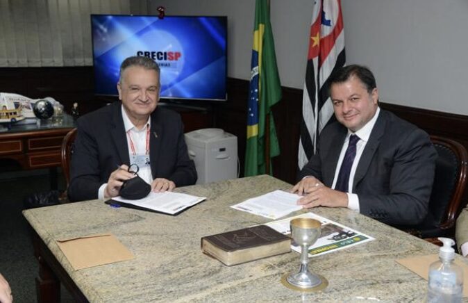 Esta foto foi tirada por Calão Jorge em 28 de outubro de 2021, quando da adesão do CRECI-SP, Conselho Regional de Corretores de Imóveis de São Paulo, à campanha Lote Legal, da AELO. O convênio foi assinado pelos presidentes Caio Portugal e José Augusto Viana Neto. Três outros diretores da AELO prestigiaram o encontro: o vice-presidente, Luis Paulo Germanos; o diretor de Assuntos Regionais, Elias Zitune, e o diretor de Relações Institucionais, Jorgito Donadelli.