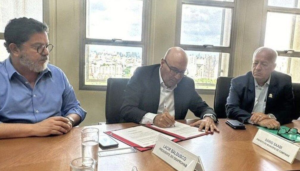 A Secretaria de Desenvolvimento Urbano e Habitação do Estado de São Paulo divulgou importante notícia sobre o Grupo de Análise e Aprovação de Projetos Habitacionais. Título: “Digitalização do Graprohab agiliza licenciamento ambiental na região de Campinas”. O AELO ON, que vem acompanhando todos os fatos em torno do Graprohab, reproduz, a seguir, o texto da Secretaria. Alguns detalhes já são de conhecimento dos leitores do nosso boletim, mas agora são mostrados os números da evolução obtida com essas inovações. Esta foto é do final de 2024, ocasião em que o prefeito de Campinas, Dário Saadi, assinou a adesão ao Graprohab Integra, na Secretaria de Desenvolvimento Urbano e Habitação, em São Paulo. À esquerda, o presidente do Graprohab, Lacir Baldusco.