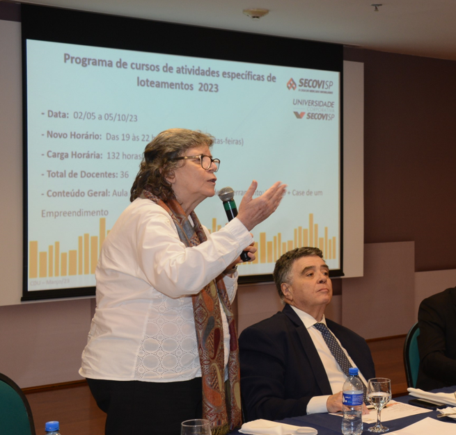 A professora Mariangela Machado, coordenadora do Programa de Cursos de Loteamentos da Universidade Secovi, elogiada pela qualidade dos módulos de 2023, vai falar sobre os planos para os Cursos 2024, que merecem uma nota especial neste AELO ON.