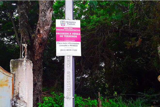 Vale a pena relembrar que Campinas foi pioneira também na adesão de prefeituras à campanha Lote Legal, da AELO, de combate a loteamentos clandestinos. O acordo foi assinado, em 5 de maio de 2022, pelo prefeito Dário Saadi e pelo presidente da AELO, Caio Portugal, num evento organizado pela Prefeitura de Campinas e pelo delegado regional da AELO, Clovis Cabrino Júnior.A Prefeitura de Bragança Paulista, vem acelerando as ações para combater loteamentos irregulares ou clandestinos. De janeiro a novembro, as vistorias dos órgãos municipais detectaram 13 loteamentos fora da legislação de parcelamento do solo. Foram feitas também 140 fiscalizações periódicas, colocação de 15 placas de embargo administrativo em loteamentos clandestinos e dois acompanhamentos de flagrantes de vendas irregulares.A placa desta foto é um exemplo dos avisos afixados pelas autoridades municipais de Bragança em loteamentos embargados, anunciando a proibição da venda de terrenos.