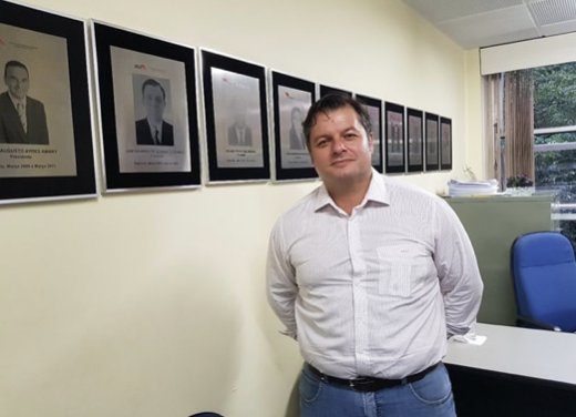 Esta foto de Calão Jorge, tirada em 18 de março de 2019, mostra o presidente Caio Portugal, na sede da AELO, alguns minutos depois de ter sido reeleito, mais uma vez, para o cargo que vem ocupando desde março de 2011.