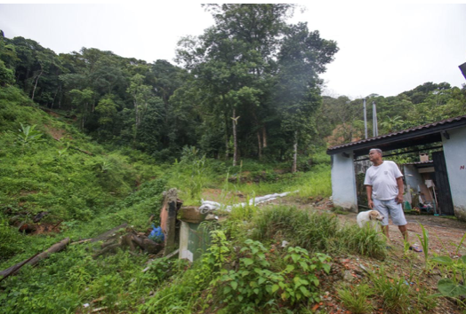 As outras construções foram levadas pelo deslizamento – Zeca aponta o dedo e vai se lembrando de quem morava lá um ano atrás; os demais vizinhos acabaram se mudando. Abalada e com idas regulares ao psicólogo, a mulher de Zeca, Eleni, vive com parentes em Boiçucanga, também no litoral, mas promete voltar.